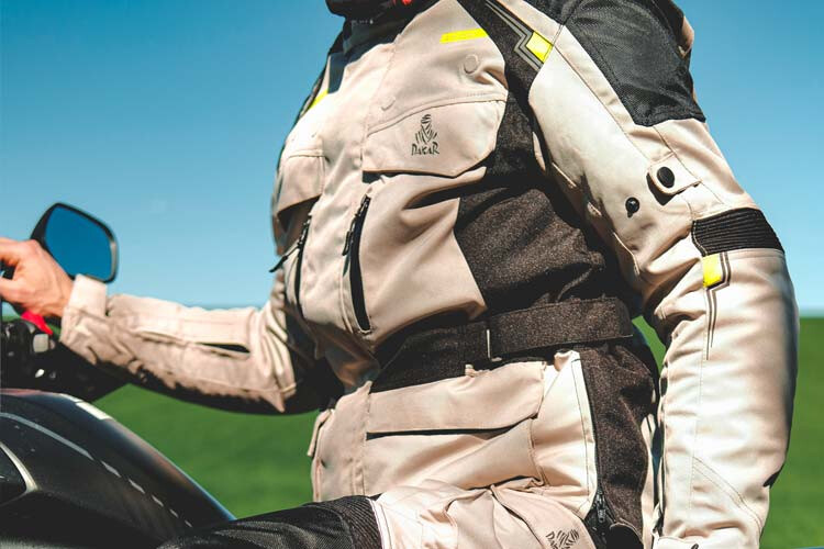 On est sur une veste Adventure/Touring donc son style est bien marqué : ce n’est pas passé partout et tout le monde sait que vous faites de la moto. Le petit plus, c’est que ça vous donne un côté baroudeur, amplifié par le logo DAKAR, pas mal pour frimer un peu à la machine à café ou lors d’un afterwork ! Mais sachez que cette veste est faite pour parcourir les routes et les chemins avec une moto qui va avec : un bon trail. C’est important d’être raccord et d’arborer un total look, non ?!